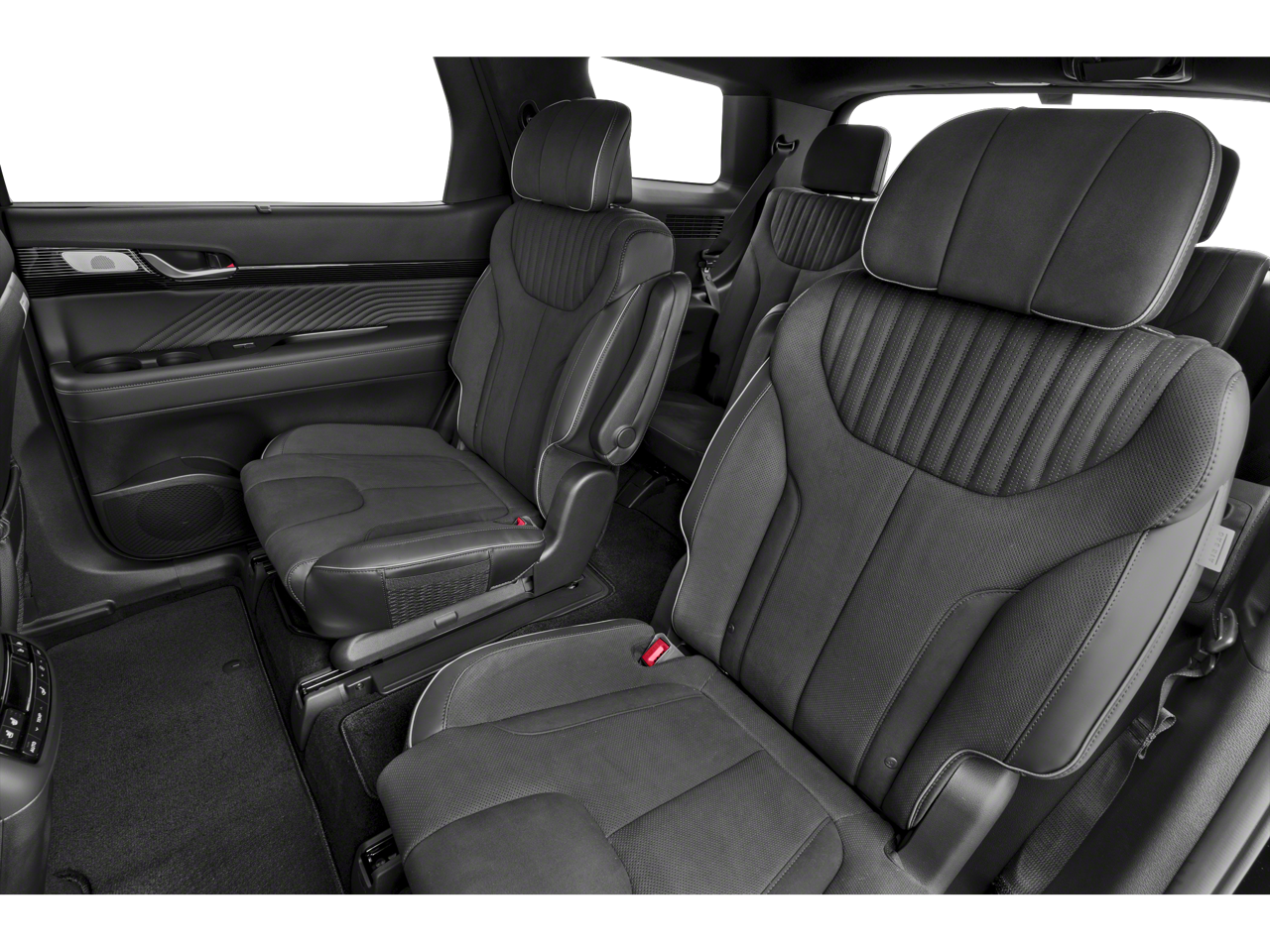 12 Speakers, 3rd row seats: split-bench, 4-Wheel Disc Brakes, ABS brakes, Air Conditioning, All-Season Fitted Liners, Alloy wheels, AM/FM radio: SiriusXM, Apple CarPlay & Android Auto, Auto High-beam Headlights, Auto-dimming door mirrors, Auto-dimming Rear-View mirror, Auto-leveling suspension, Automatic temperature control, Brake assist, Bumpers: body-color, Cargo Blocks, Cargo Cover, Cargo Tray, Carpeted Floor Mats, Compass, Delay-off headlights, Driver door bin, Driver vanity mirror, Dual front impact airbags, Dual front side impact airbags, Electronic Stability Control, Emergency communication system, Exterior Parking Camera Rear, First Aid Kit, Four wheel independent suspension, Front anti-roll bar, Front Bucket Seats, Front Center Armrest, Front dual zone A/C, Front reading lights, Fully automatic headlights, Garage door transmitter: HomeLink, harman/kardon® Speakers, Heads-Up Display, Heated & Ventilated Front Bucket Seats, Heated door mirrors, Heated front seats, Heated rear seats, Heated steering wheel, Illuminated entry, Knee airbag, Leather steering wheel, Low tire pressure warning, Memory seat, Microfiber Suede Seat Trim, Navigation System, Occupant sensing airbag, Option Group 01, Outside temperature display, Overhead airbag, Overhead console, Panic alarm, Passenger door bin, Passenger vanity mirror, Power door mirrors, Power driver seat, Power Liftgate, Power moonroof, Power passenger seat, Power steering, Power windows, Radio data system, Radio: AM/FM/MP3 Premium Audio System, Rain sensing wipers, Rear air conditioning, Rear anti-roll bar, Rear audio controls, Rear reading lights, Rear side impact airbag, Rear window defroster, Rear window wiper, Reclining 3rd row seat, Remote keyless entry, Roof rack, Security system, Speed control, Speed-sensing steering, Split folding rear seat, Spoiler, Steering wheel mounted audio controls, Tachometer, Telescoping steering wheel, Tilt steering wheel, Traction control, Trip computer, Turn signal indicator mirrors, Variably intermittent wipers, Ventilated front seats, Ventilated rear seats, Wheel Locks, Wheels: 20 x 7.5J Black Liquid Paint Alloy.
